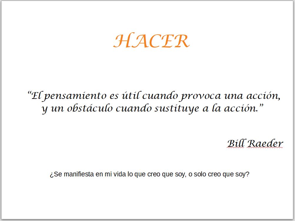 Y comparto también mi opinión de que si solamente os ayuda a reflexionar, nada de esto servirá para nada. La clave, en mi opinión (insisto), está en que estas reflexiones acaben teniendo su reflejo en nuestra vida cotidiana. Si nuestro trabajo con cualquiera de estas preguntas – o cualquier otra – no acaba manifestándose de alguna manera en nuestra vida, entonces nuestro trabajo no servirá de nada.